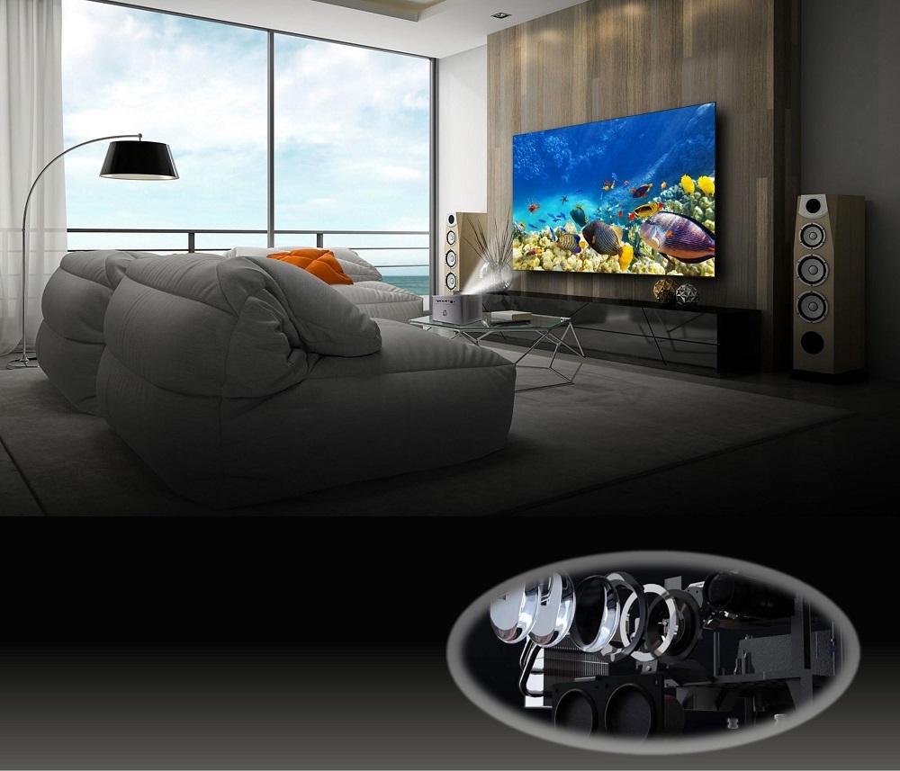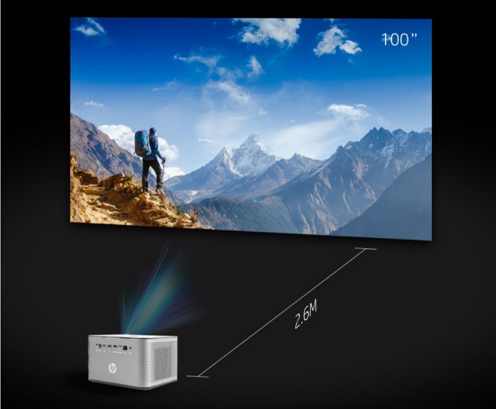 採用1.2投射比鏡頭,只要2.6M(8.8英尺)距離就可投射100英寸(255釐米)的大螢幕