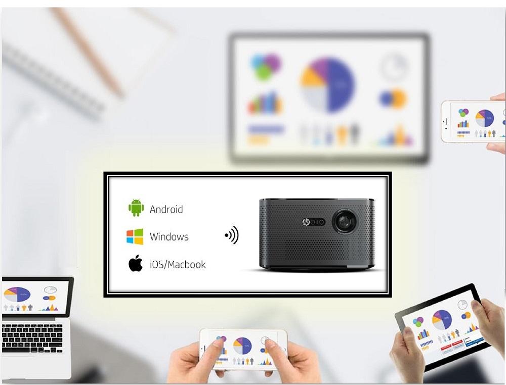 支持多個設備(最多4個)可以同時無線投影其各自的屏幕到MP2000PRO