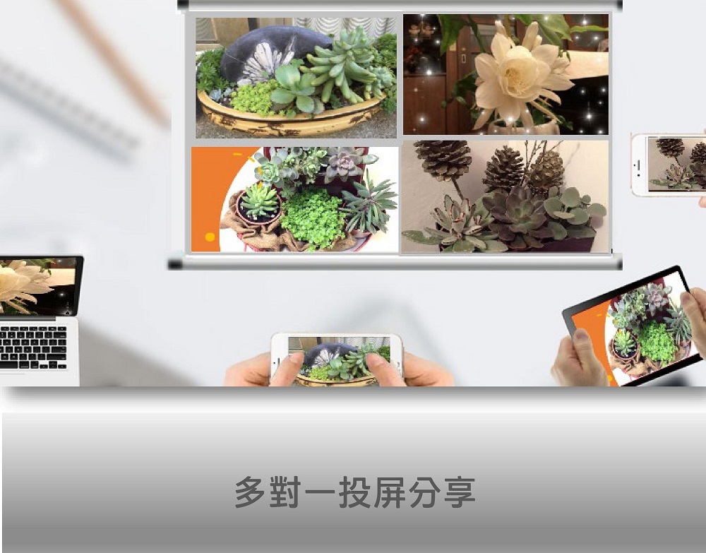 在商務/教育/演示/會議/教室/餐廳等場景下,主持人和與會者可以輕鬆演示/共用/交流他們的演示和想法,共同實現具有影響力的工作。