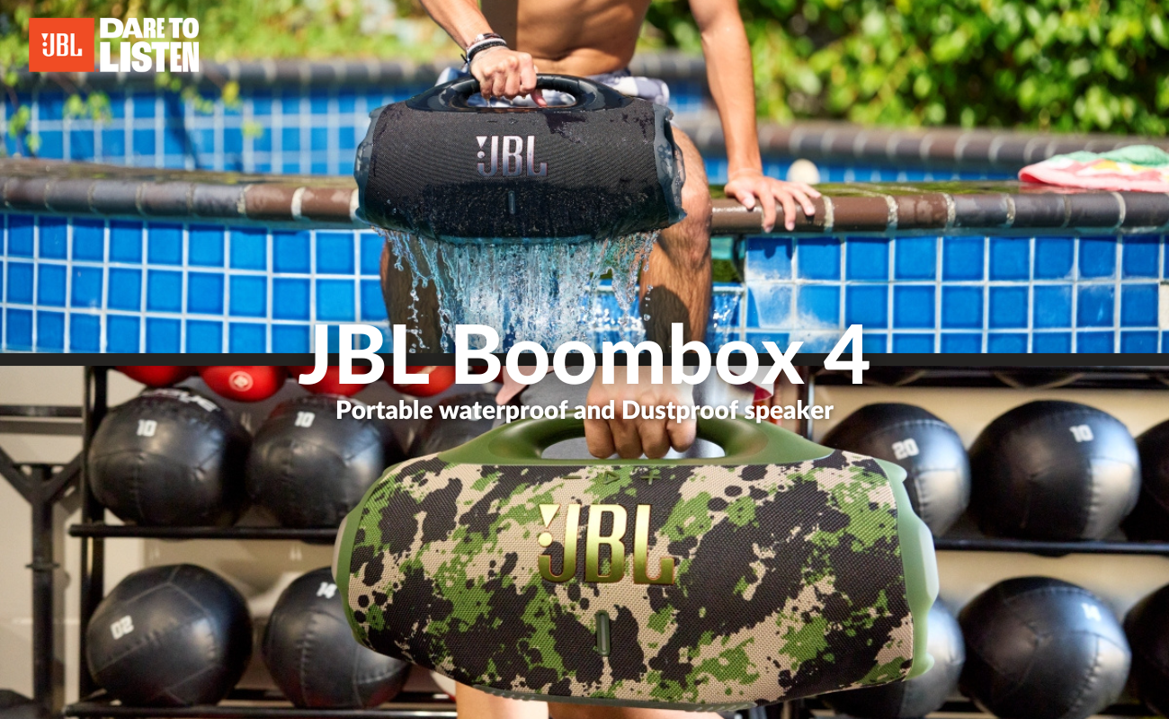 Built to withstand any weather or accidental spills, the JBL Boombox 4 is fully waterproof and dustproof.
