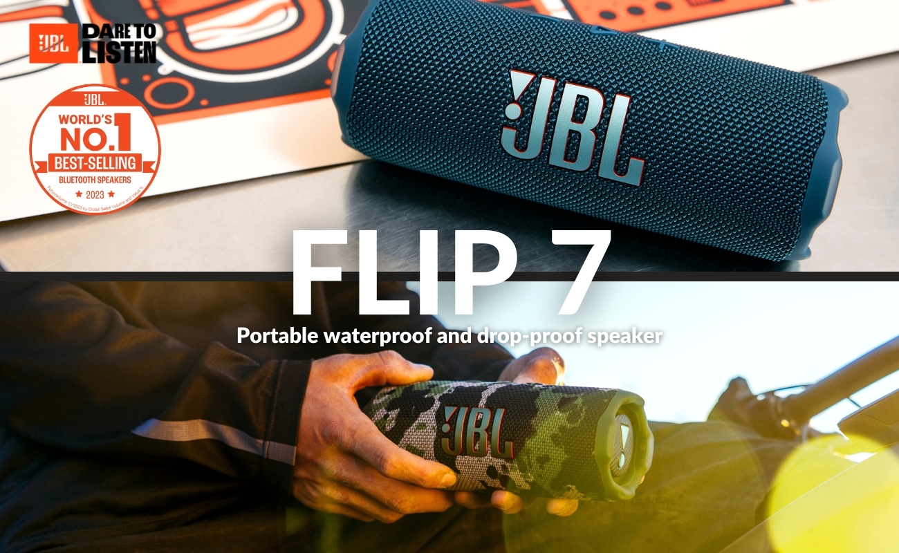 Have you ever dropped your speaker, had it roll down a dusty hill and land in a lake? No? Well, believe it or not, it happens. So, we built the JBL Flip 7 to be as life-proof as they come. On top of our legendary waterproof and dust-proof design (an industry-leading IP68, BTW), we’ve also made sure that if you drop it from 1-meter onto your concrete floor, it’ll keep kicking. But please, don’t go throwing your speaker around just to flex on your friends. Throw parties instead.