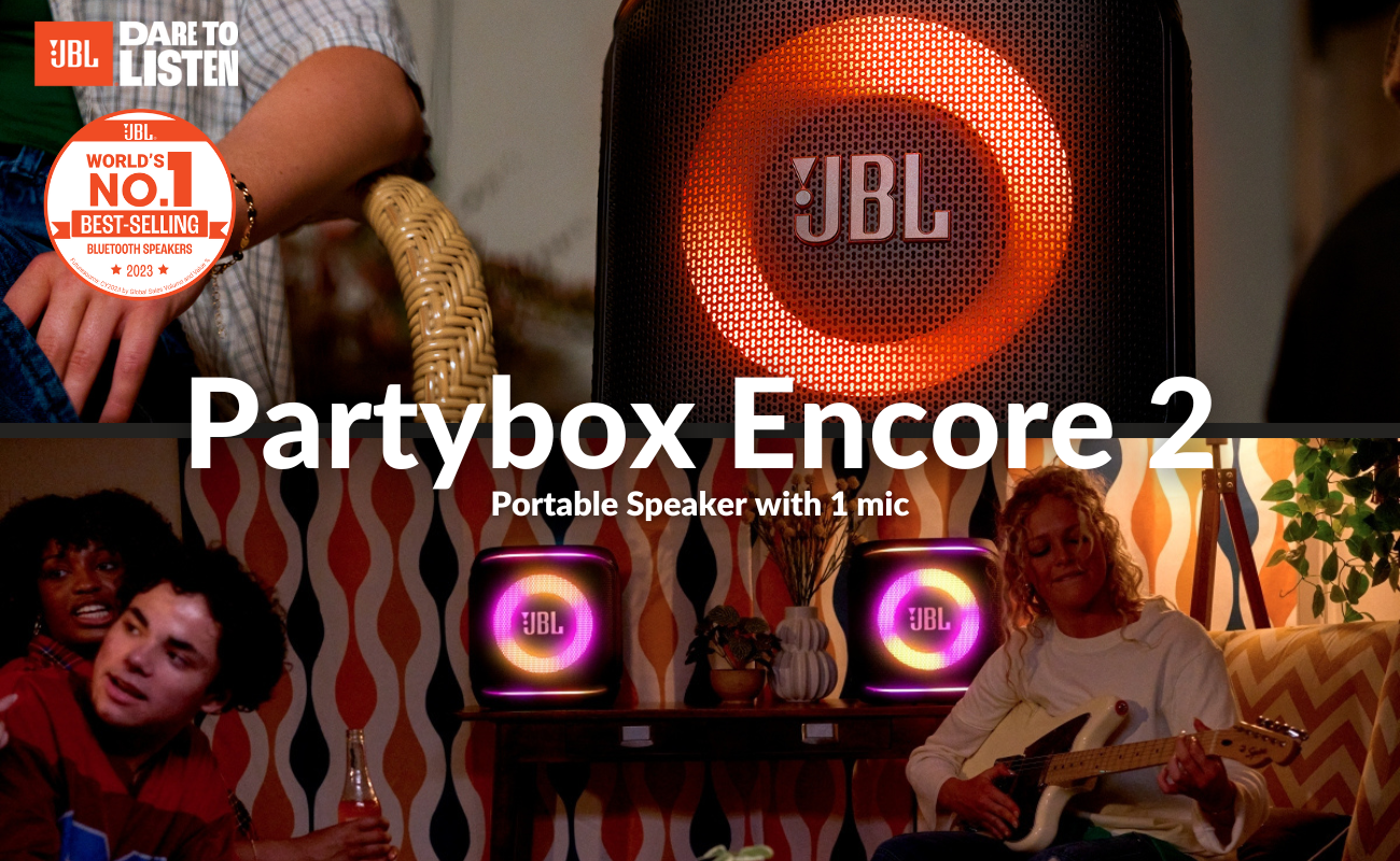 Take your sound down the block or go global--whichever you choose the JBL PartyBox Encore 2 is ready to go with its flexible handle and ergonomic design.