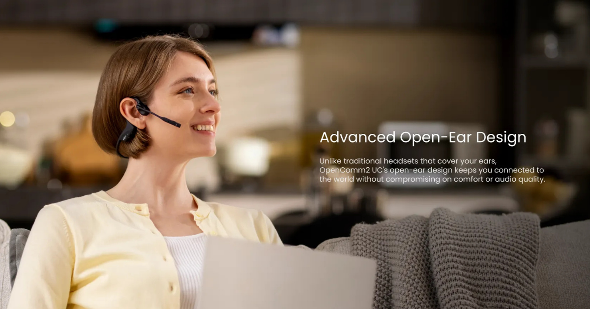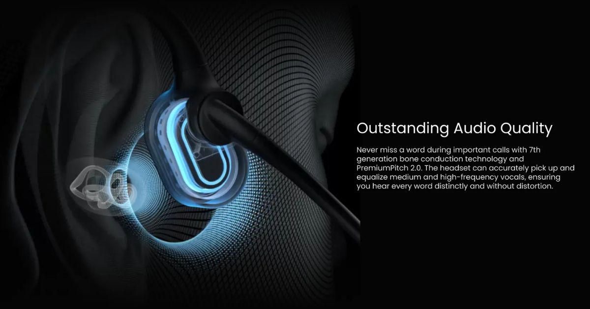 *OpenComm2 UC is designed to resist sweat and water splashes. Internal testing confirms it meets the IP55 rating under the IEC 60529 standard for dust and water resistance. Note that sweat and water resistance can degrade over time with normal wear and tear.