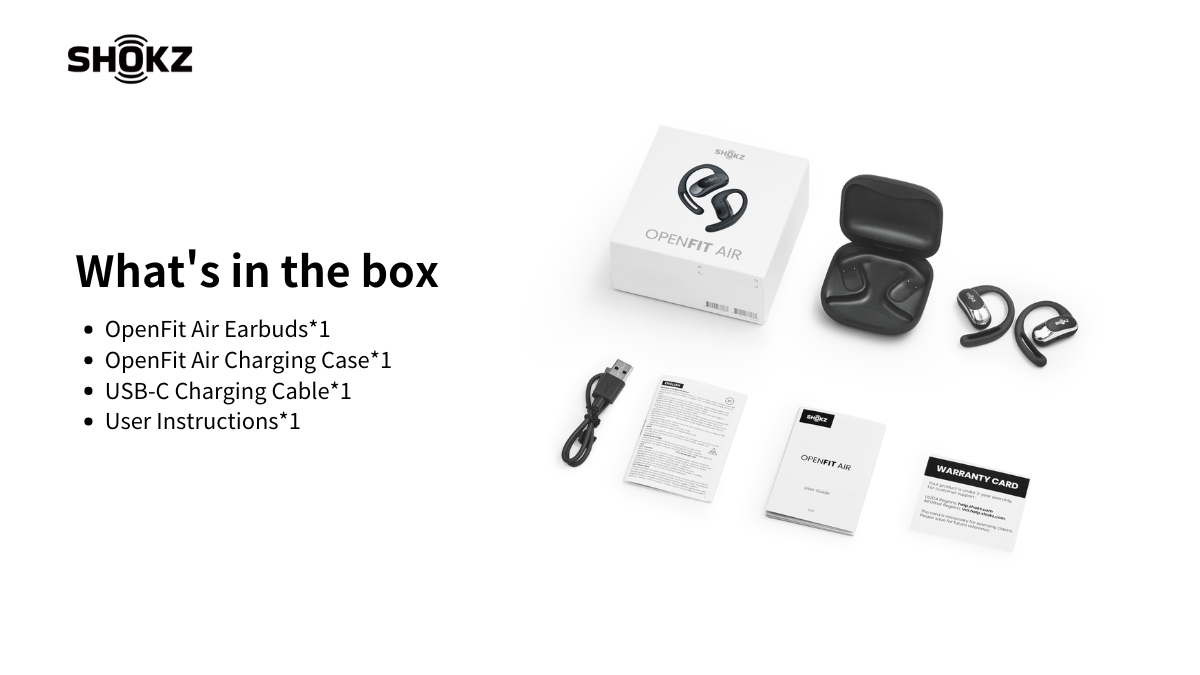 4. IP54 water resistance only applies to the earbuds, and the charging case is not rated waterproof. OpenFit Air was tested under controlled laboratory conditions and has a rating of IP54 under IEC standard 60529. Water resistance is not a permanent condition and resistance might decrease as a result of normal wear. Please do not submerge or expose OpenFit Air for an extended period to water. Please do not attempt to charge a wet OpenFit Air.