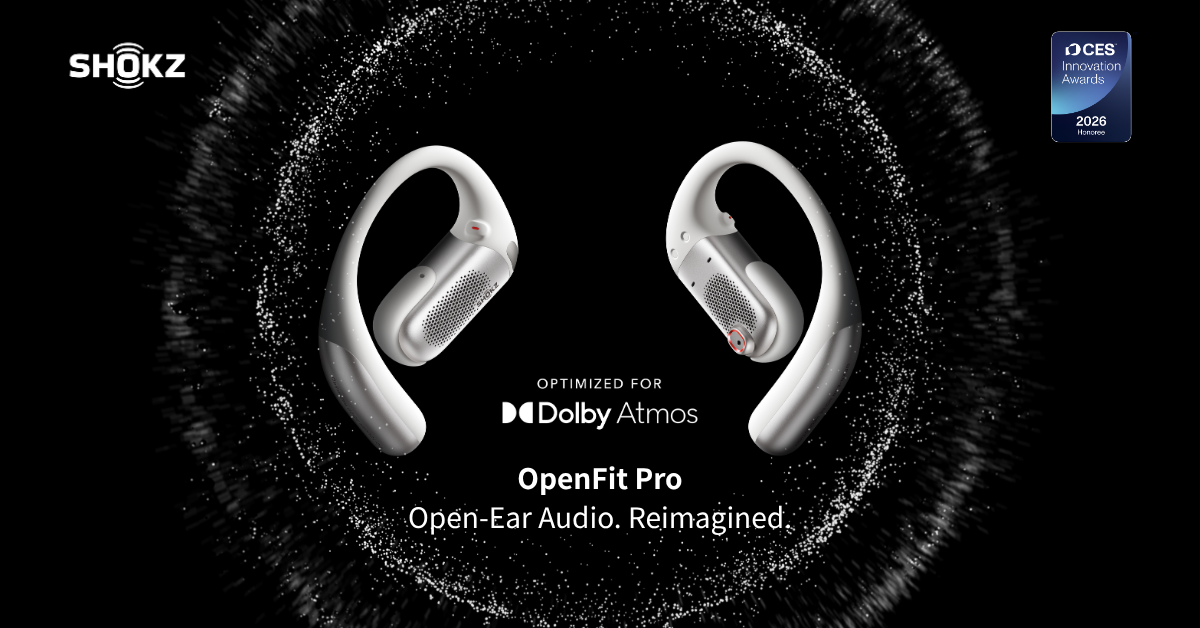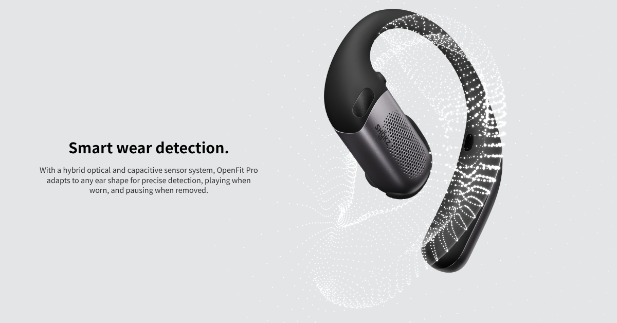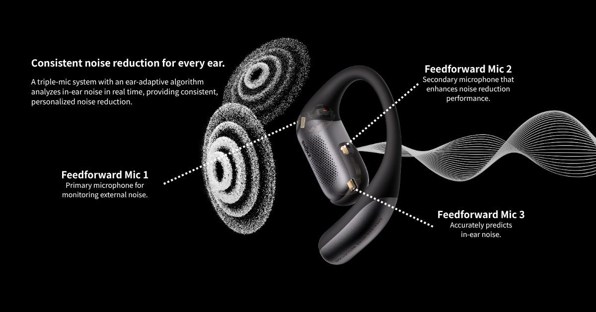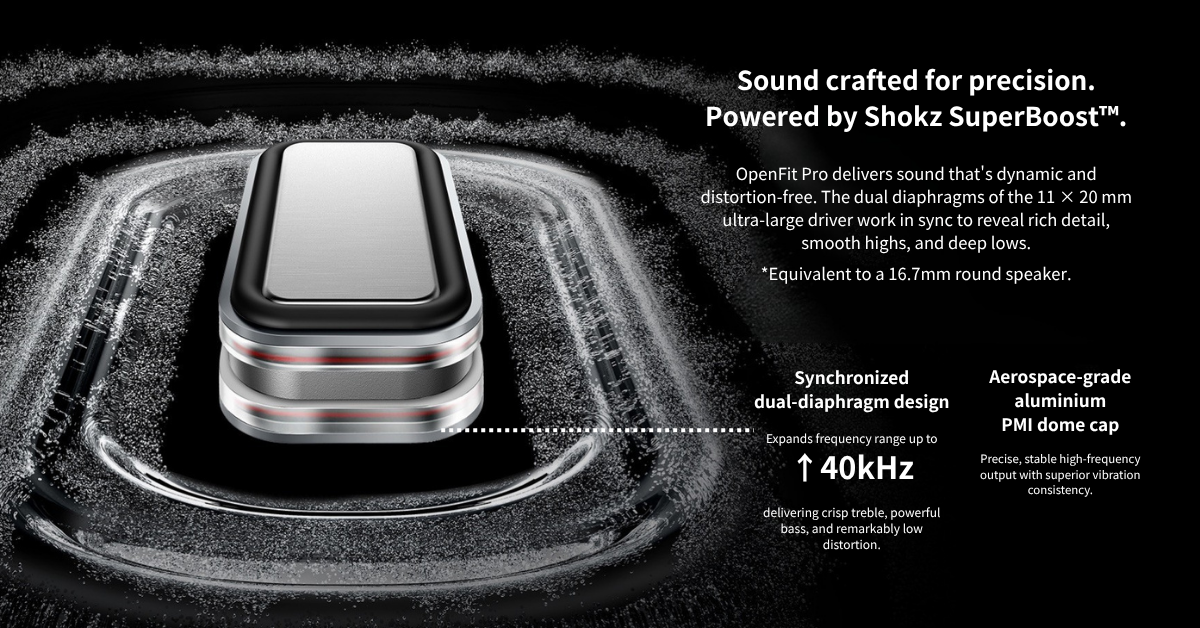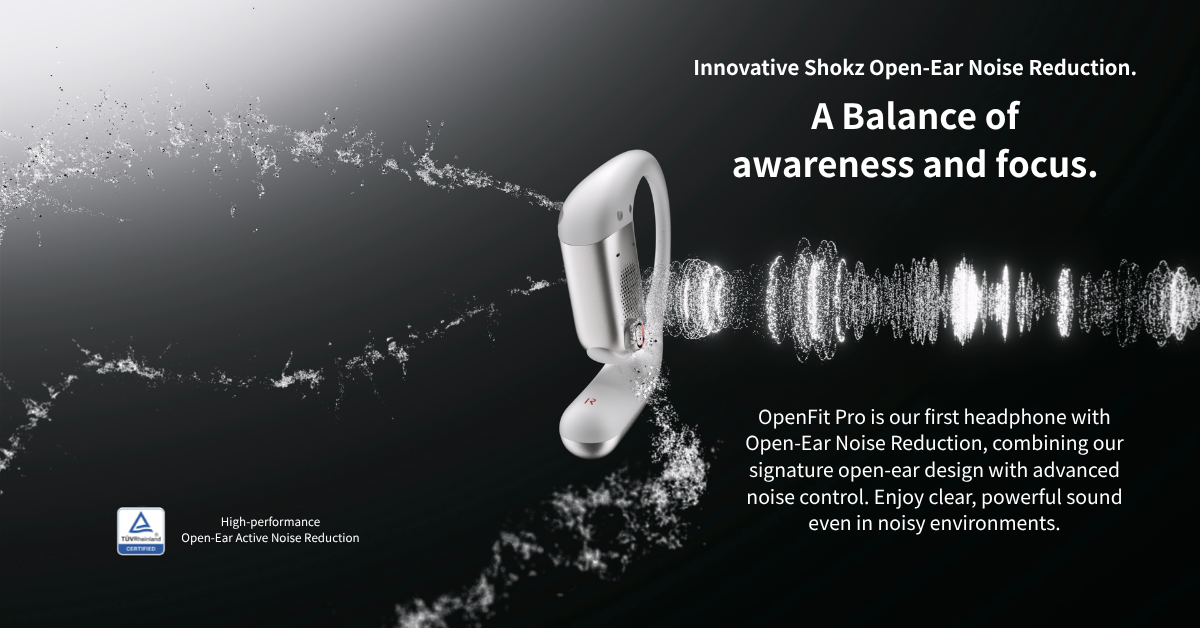 *Shokz OpenFit Pro features AI noise reduction technology designed to reduce environmental noise while preserving human voices. Internal simulations conducted by Shokz Lab suggest that this technology can achieve a signal-to-noise ratio improvement of approximately 42 dB, corresponding to a potential 99.4% reduction in ambient noise, along with effective reduction of loud echoes. Note that actual performance may vary depending on environmental conditions.