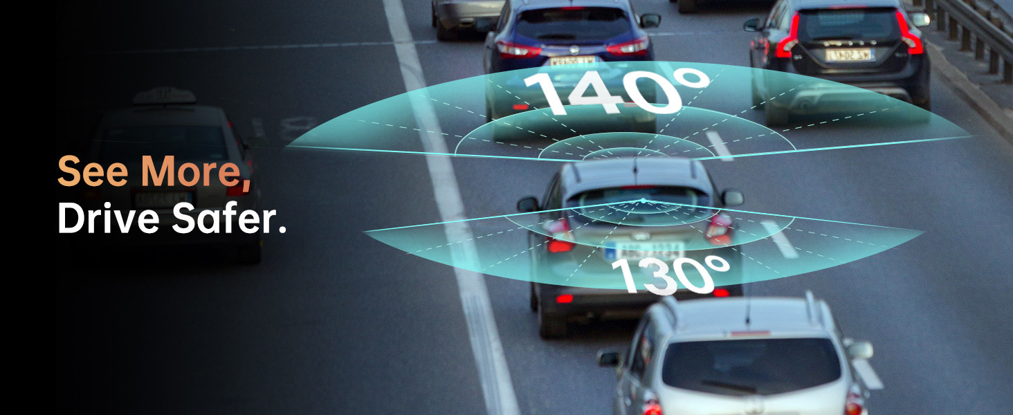 140°超廣角前鏡頭 + 130°後視鏡頭,視野更廣,行車更安全