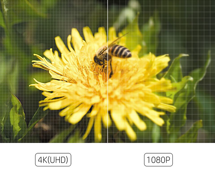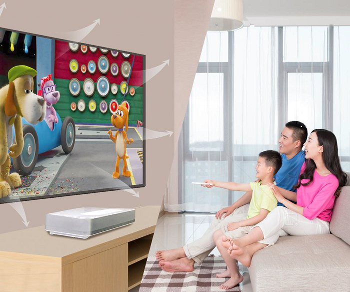 採用TI DLP DMD 晶片,原生4K 超高清 (3840 x 2160) 解析度, 提供4 倍 1080P 的圖像畫數,即使投射 150 吋震撼巨屏也足以近觀的細膩精緻畫質
