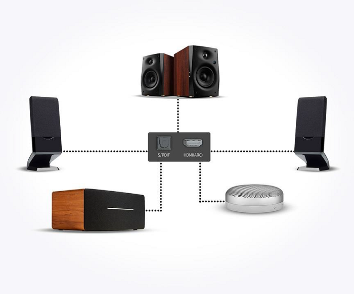 支援數位光纖音訊輸出S/PDIF、HDMI ARC 以及藍牙輸出,提供多元外接音響可行性連結您的專業級音響,沉醉在劇院級的視聽饗宴