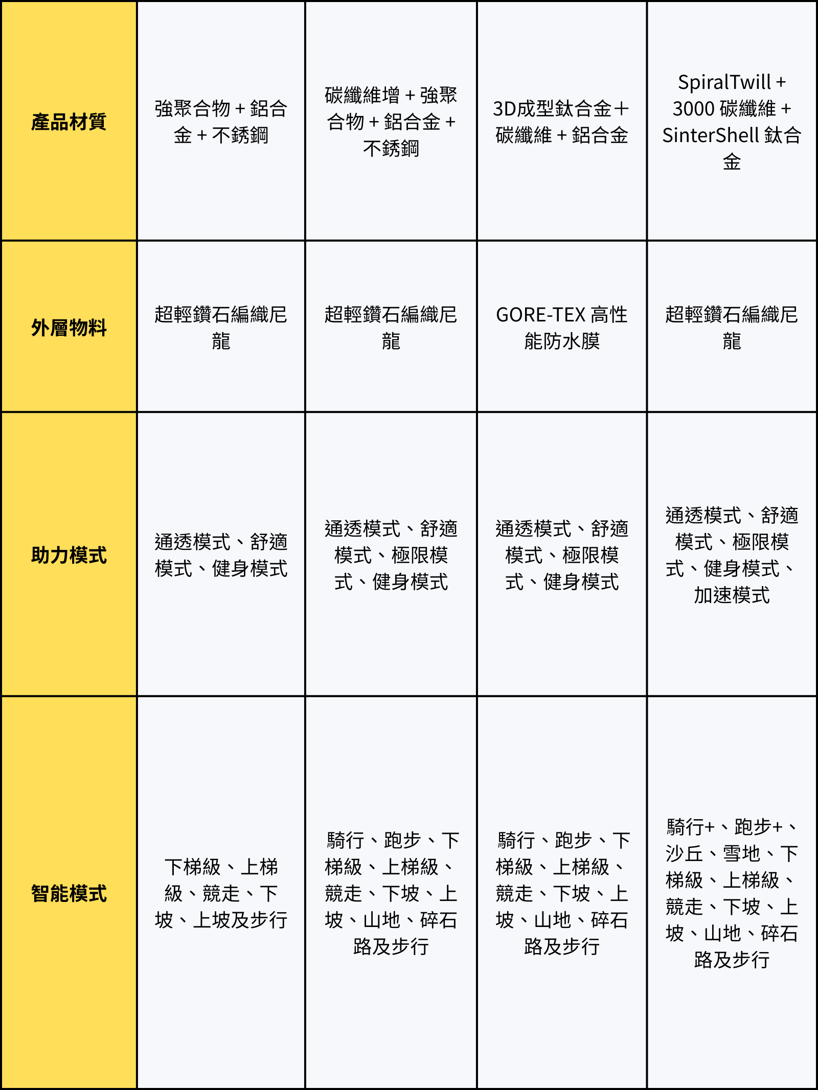助力模式:通透模式、舒適模式、極限模式、健身模式