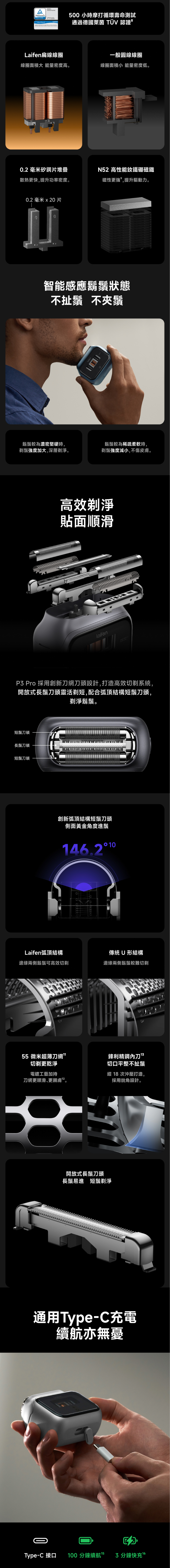 🔹 55毫米超薄弧形刀網,貼面順滑不扯鬚