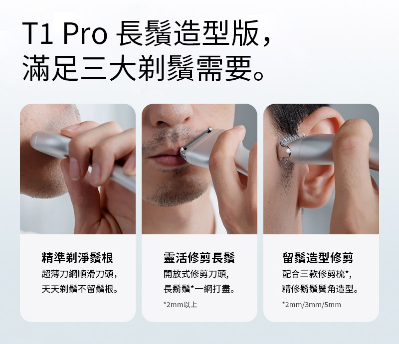 🔹 附有開放式造型修剪刀頭,及3款不同長度修剪梳