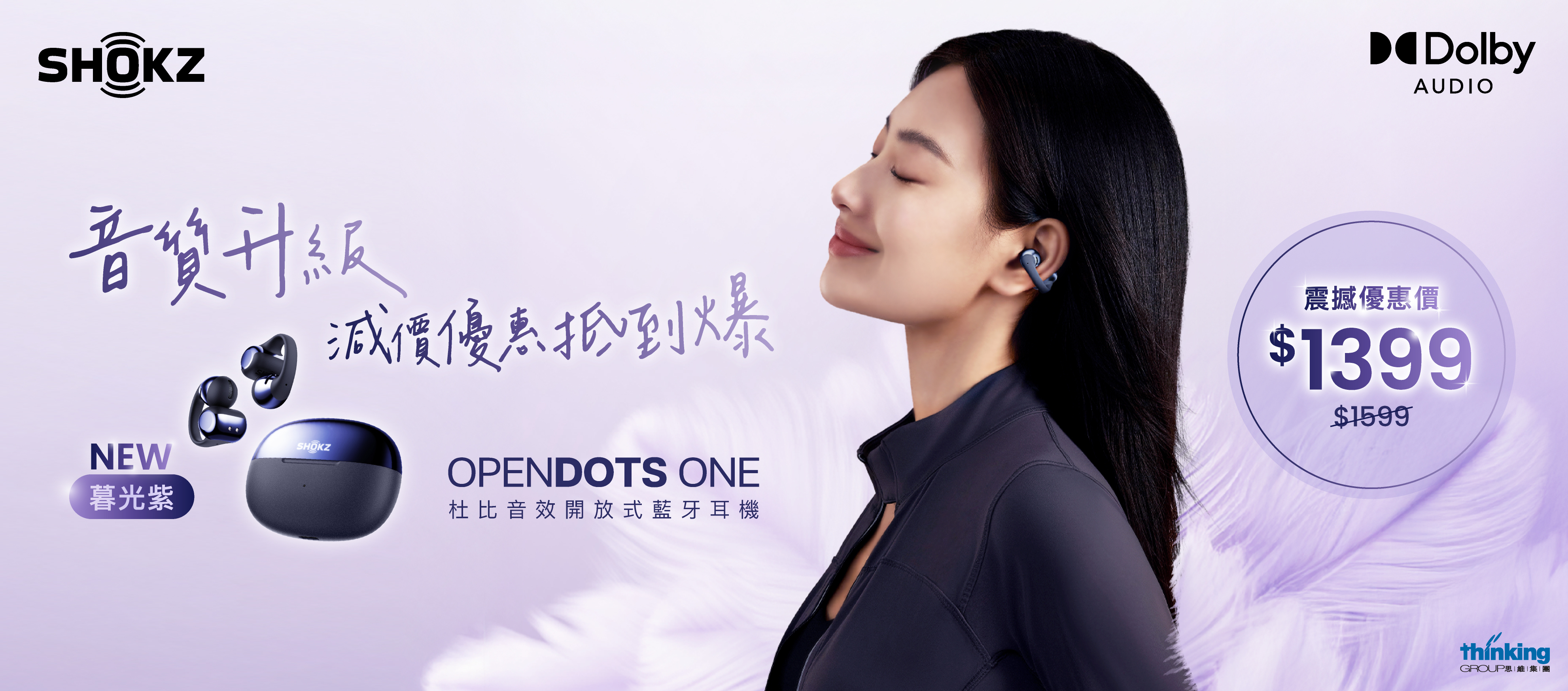 Shokz 以創新「動鈦圈」設計重新定義輕盈與穩固的完美平衡,推出首款耳夾式耳機 —【影院級】OpenDots ONE 杜比音效開放式藍牙耳機。核心配備0.19mm超薄鈦片支架,結合9g動態預緊力調校系統,智能適應不同耳型(大耳不覺緊繃、細耳不易鬆脫),真正實現「隱形佩戴」的極致體驗。
