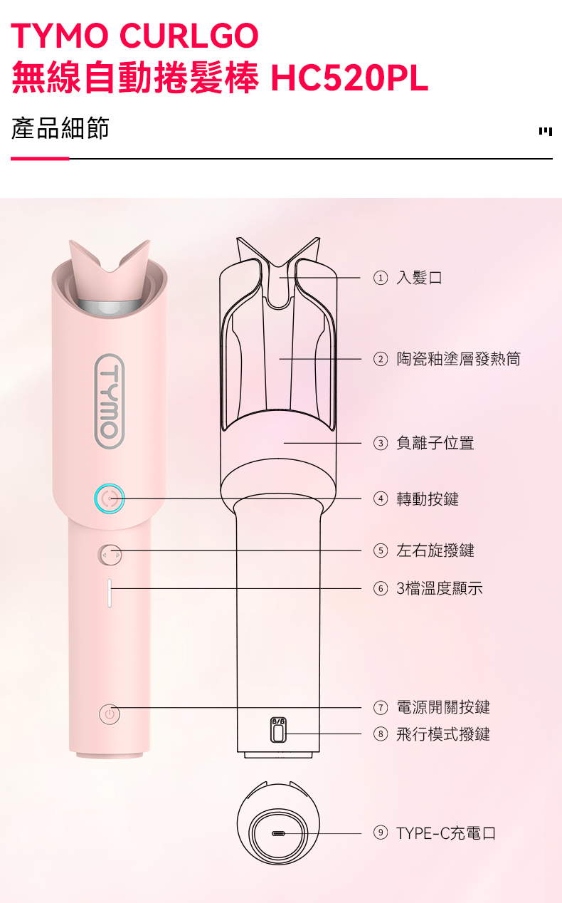 產品名稱:TYMO CurlGo 無線自動捲髮棒