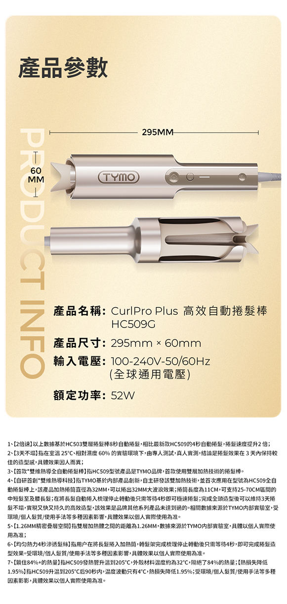 產品名稱:TYMO CurlPro Plus 高效自動捲髮棒