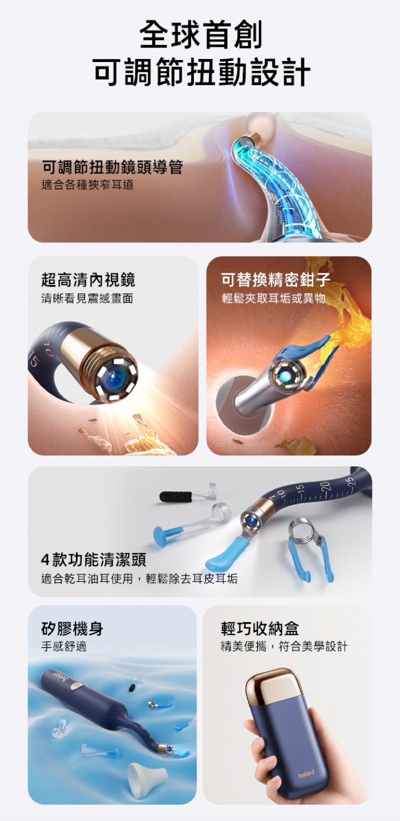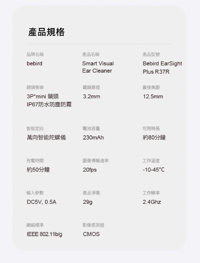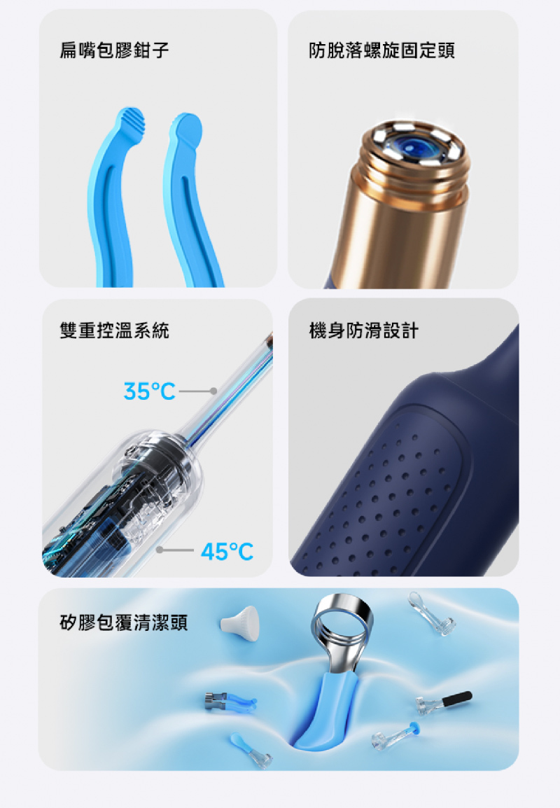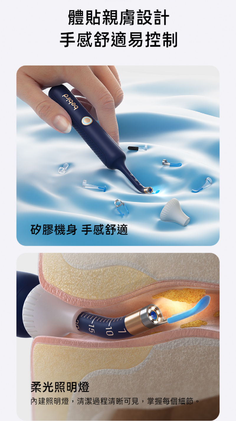 • 配備安全防護塞避免深入耳道