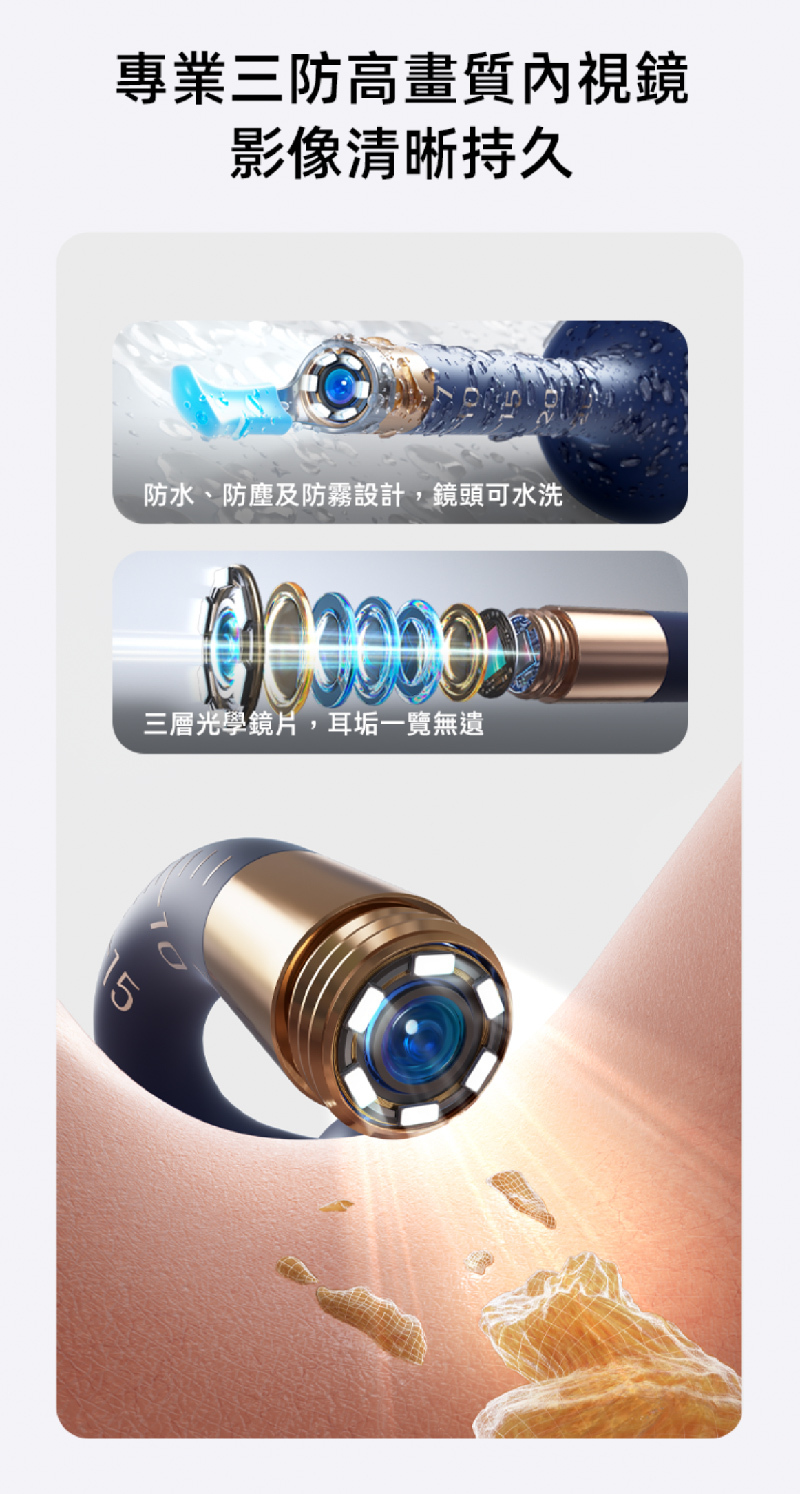 • IP67防水防塵内置柔光照明燈