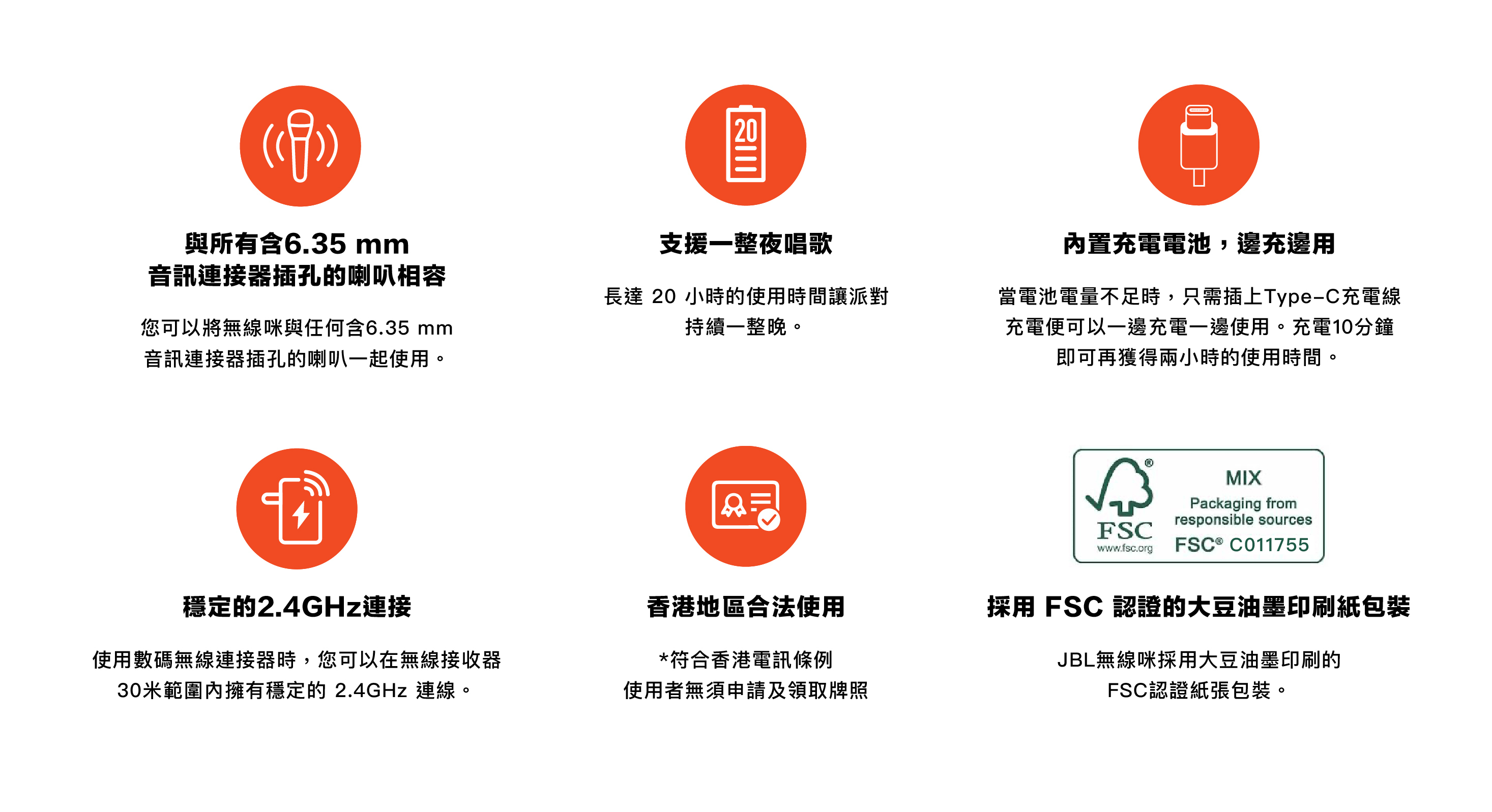 JBL 無線咪採用大豆油墨印刷的 FSC 認證紙張包裝。