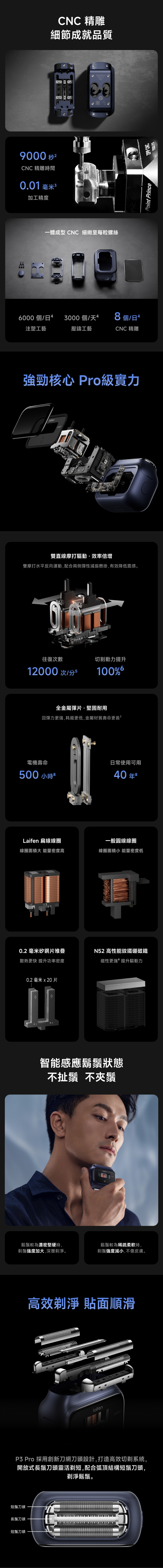 🔹 55微米超薄弧形刀網,貼面順滑不扯鬚