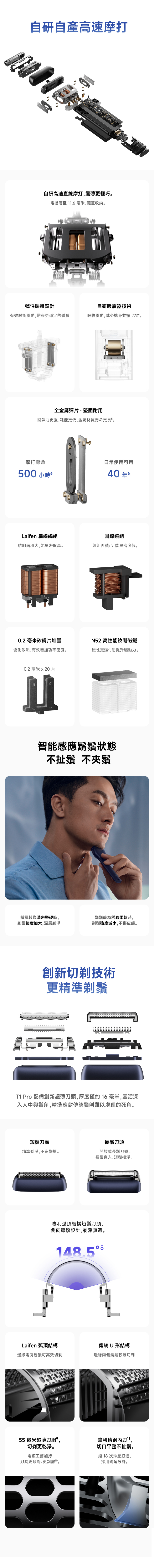 🔹 55微米超薄弧形刀網,貼面順滑不扯鬚